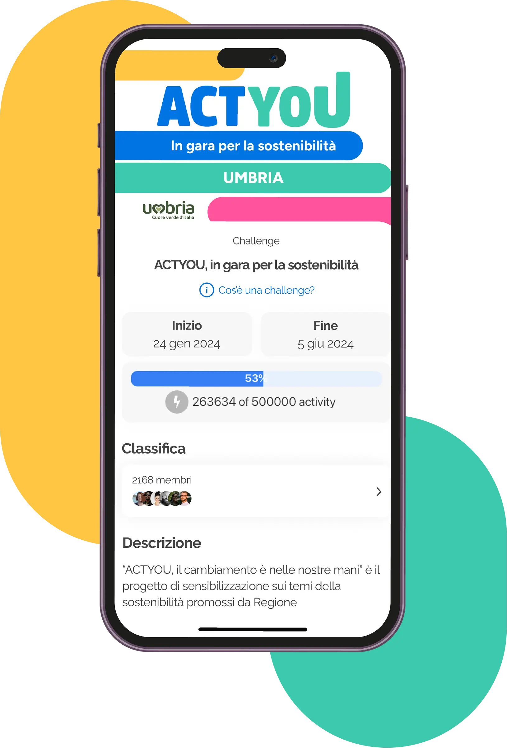 To support the Region of Umbria's Sustainable Development Strategy by educating and engaging citizens in a journey of civic participation, local empowerment, and shared responsibility. The goal: to foster a united community ready to invest in the sustainability of its territory.